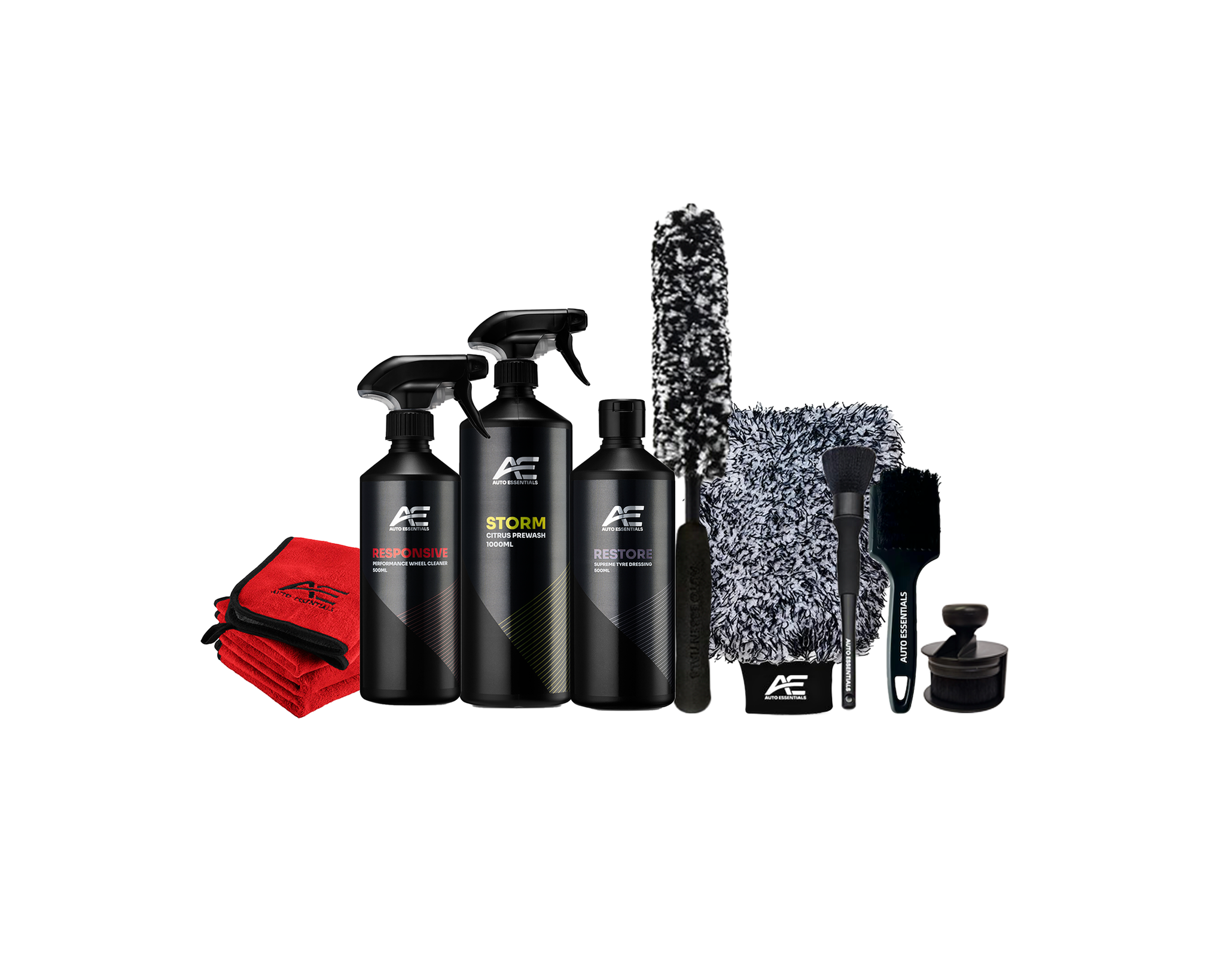 Transform your alloy wheel cleaning routine with the Auto Essentials 12 Piece Alloy Wheel Cleaning Kit. This complete set includes everything you need to tackle stubborn brake dust, road grime, and tyre browning. Featuring powerful cleaning sprays, soft yet durable microfibre towels, specialist brushes for alloys and tyres, plus a premium gel to restore that deep black showroom shine – it’s the ultimate bundle for car enthusiasts who want professional results at home.
