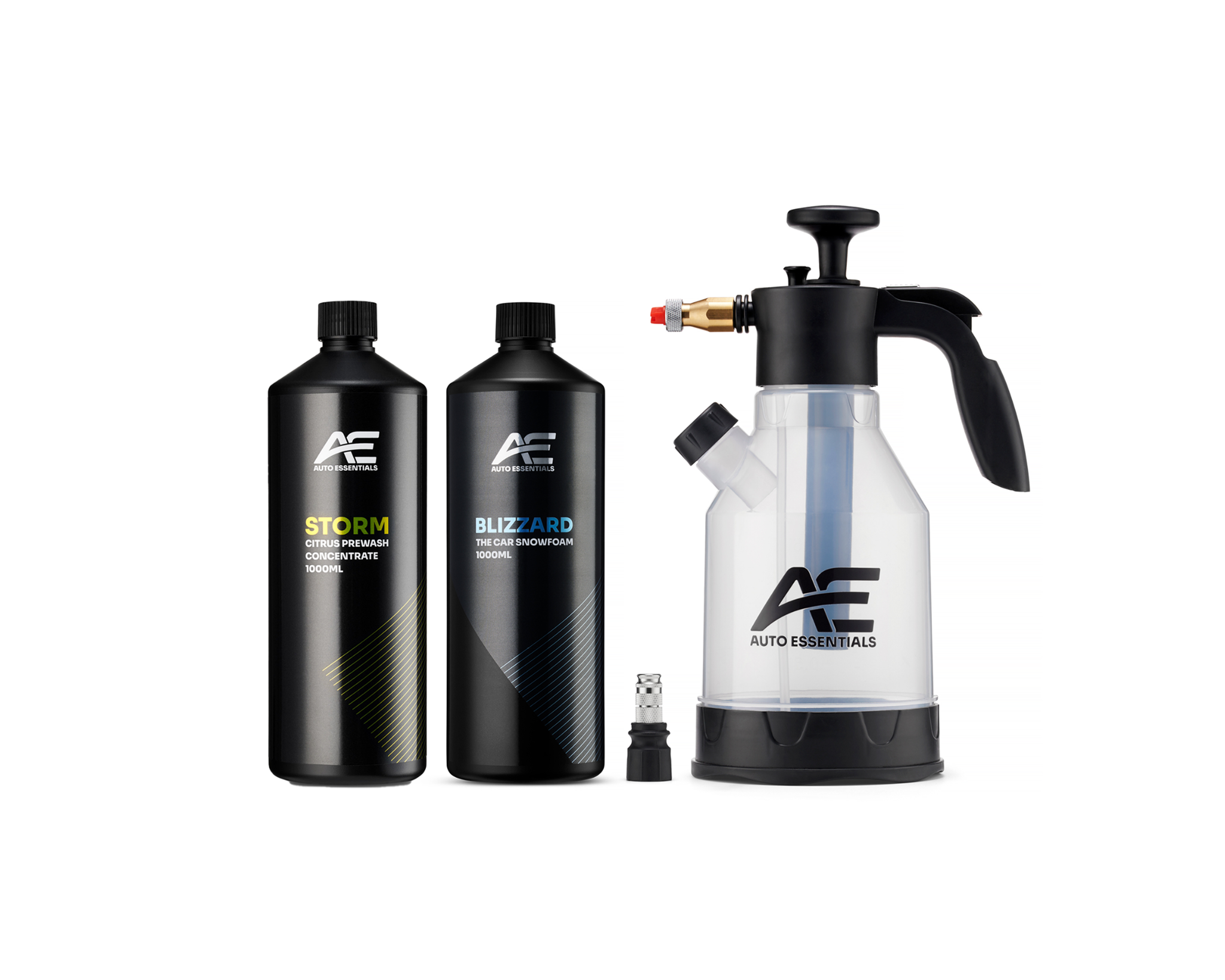 The Auto Essentials 2L Foam Pump Pressure Sprayer comes complete with Snow Foam and Citrus Prewash, giving you everything you need for a professional car wash finish at home. The 2L sprayer is simple to use and produces a thick foam that clings to the vehicle for maximum cleaning power. The included Snow Foam helps lift away dirt and grime safely before contact washing, while the Citrus Prewash is perfect for breaking down grease, road film and stubborn bug splatter. Together, they make the ideal kit for reducing swirl marks and leaving your car looking spotless and showroom fresh.