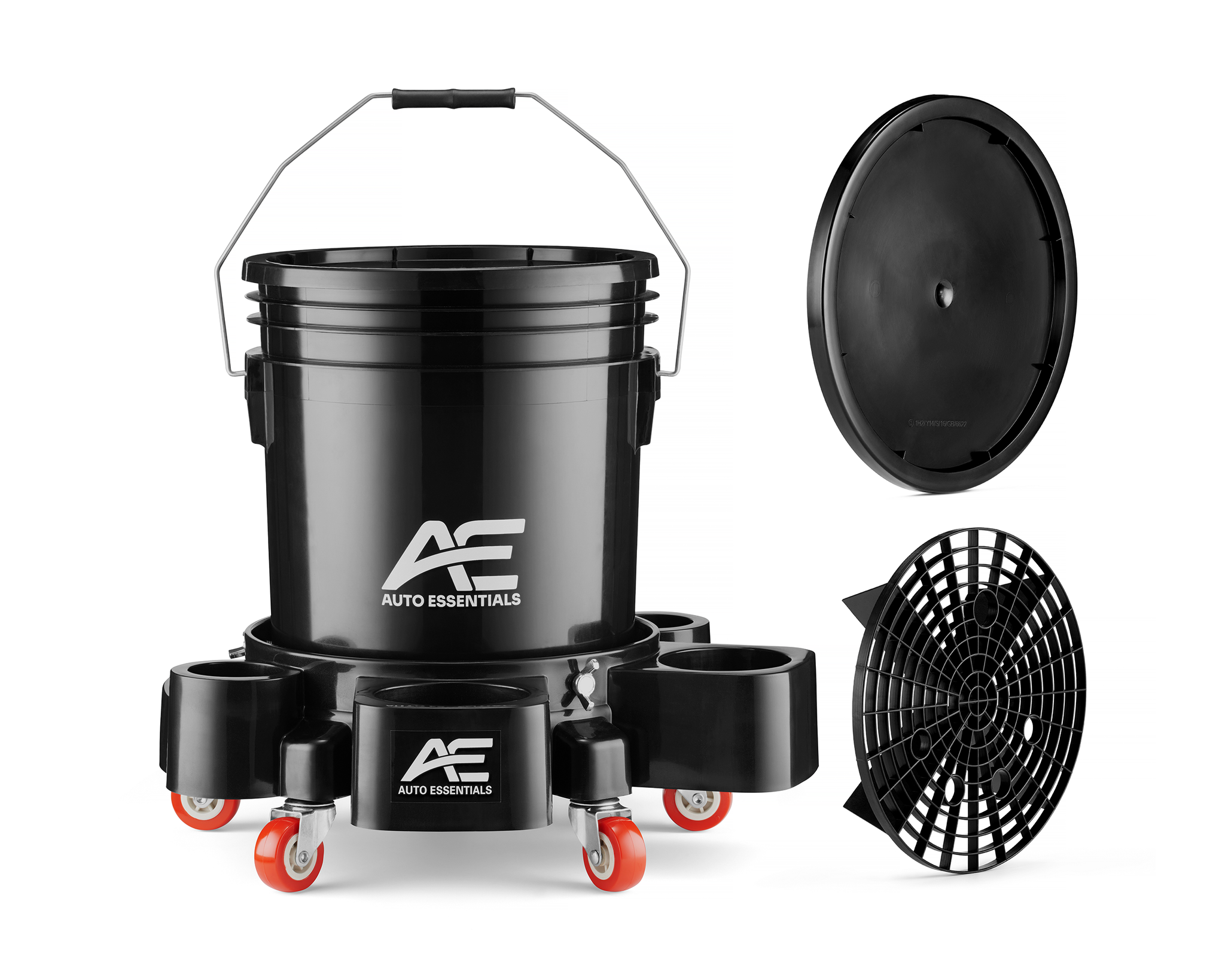 Auto Essentials Car Detailing Cleaning Bucket & Dolly Kit + Lid & Grit Guard